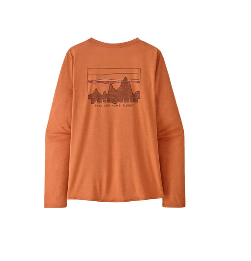 Patagonia Long-Sleeved Capilene® Cool Daily Graphic Shirt in colour '73 Skyline: Rock Melon X-Dye Our most versatile technical top is built for us...